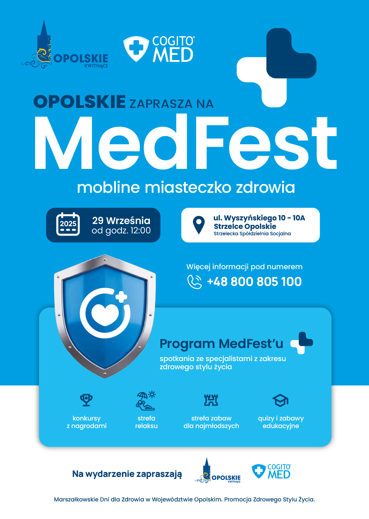 Już 29 września Urząd Marszałkowski Województwa Opolskiego oraz Cogito Med zapraszają na Marszałkowskie Dni dla Zdrowia w Województwie Opolskim.