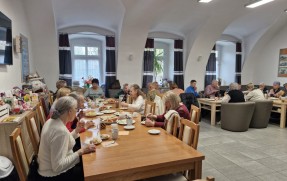 Na stole nie zabrakło pyszności – były jajka w sosie jogurtowym, sałatka ziemniaczana, ćwikła z chrzanem, kiełbaski, świeży chleb i ciasto. Był to czas wspólnych rozmów, uśmiechu i świątecznego nastroju.