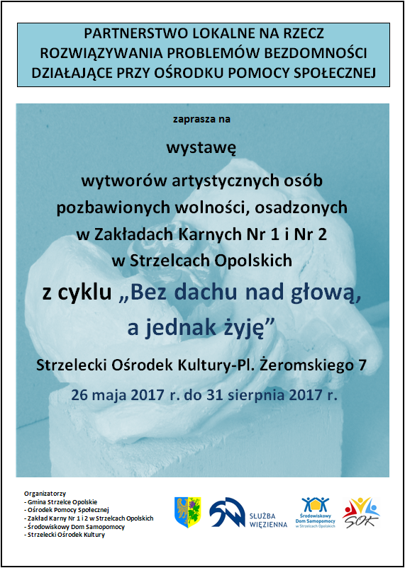 Partnerstwo Lokalne działające przy Ośrodku Pomocy Społecznej w Strzelcach Opolskich, zorganizowało wystawę z cyklu „Bez dachu nad głową, a jednak żyję”, poświęconą wytworom artystycznym osób pozbawionych wolności, osadzonych w Zakładach Karnych Nr 1 i Nr 2 w Strzelcach Opolskich.