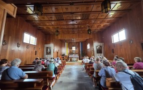 Drewniana architektura sakralna skrywa w sobie nie tylko historię ale również wyjątkowy klimat, który wywarł ogromne wrażenie na seniorach. Pierwszym punktem wycieczki był kościół św. Anny w Oleśnie, który jest najstarszym i najbardziej znanym drewnianym obiektem sakralnym. Seniorzy mogli podziwiać unikatową konstrukcję na planie róży ale także wyjątkowe ołtarze i niesamowitą atmosferę tego miejsca. W czasie naszych odwiedzin społeczność lokalna przygotowywała się do odpustu ku czci św. Anny. Seniorzy zostali również zaproszeni do zwiedzania murowanej kaplicy. Kolejnym punktem wycieczki był drewniany kościół pw. Narodzenia Najświętszej Maryi Panny w Gwoździanach, którego początki są datowane na XVI wiek. Seniorzy mogli podziwiać drewnianą konstrukcję zrębową kościoła oraz dzwonnice znajdującą się tuż obok. We wnętrzu seniorzy mieli okazję do zadumy, refleksji i wspólnej modlitwy.